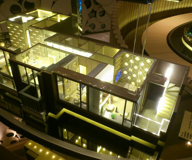 采用透明亞克力制作、內(nèi)部按比例制作家私布局、達到真實仿真效果。