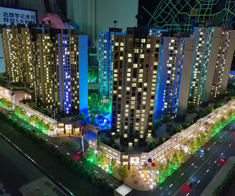 模型采用ABS等材料經(jīng)過CAD畫圖手工拼接、上色等制作工藝完成、并在模型內(nèi)部輔助LED燈光達(dá)到客戶展示要求