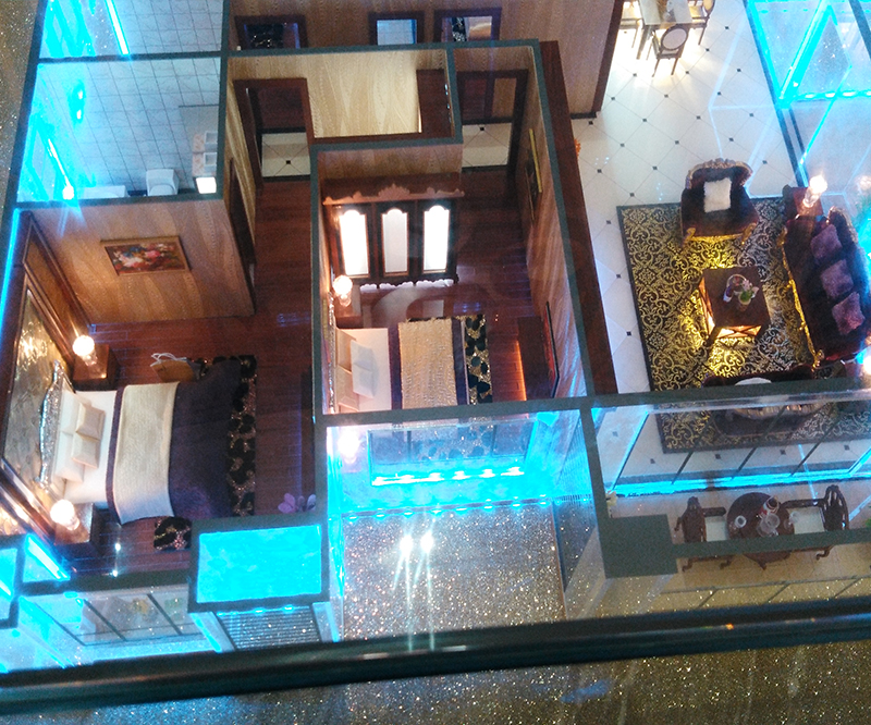 采用透明亞克力制作、內部按比例制作家私布局、達到真實仿真效果。
