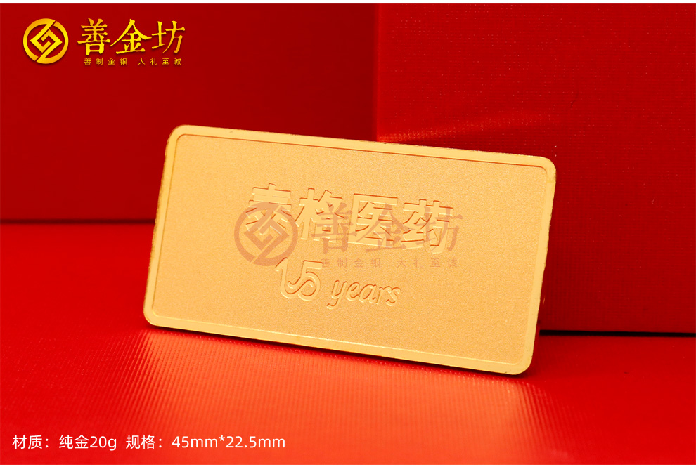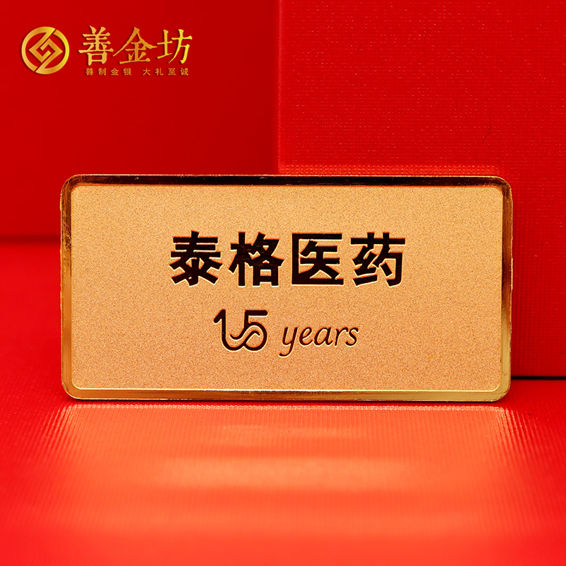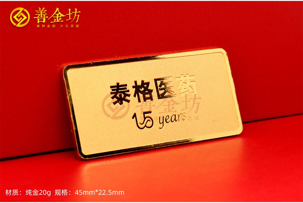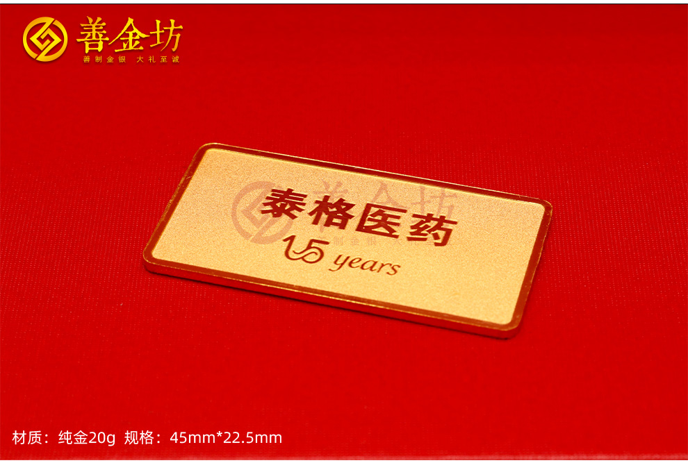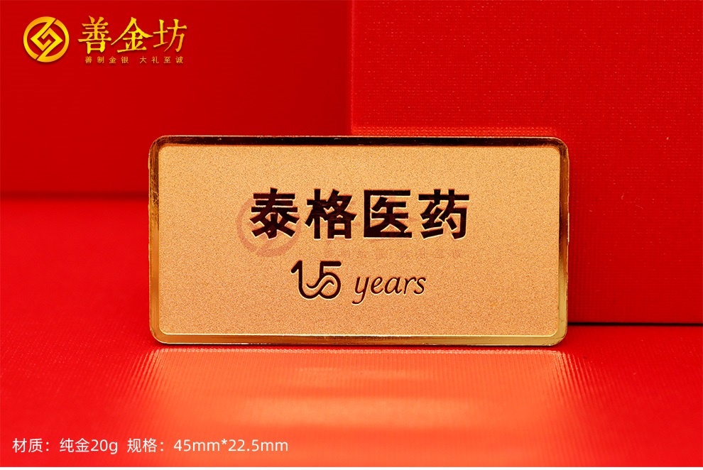 浙江泰格醫(yī)藥入職十五周年金條_定制金條 定做金條 金條制作 20克金條